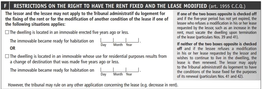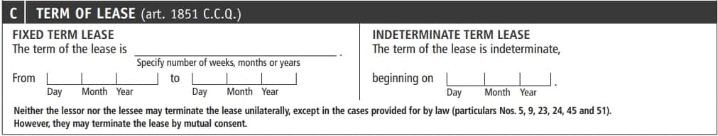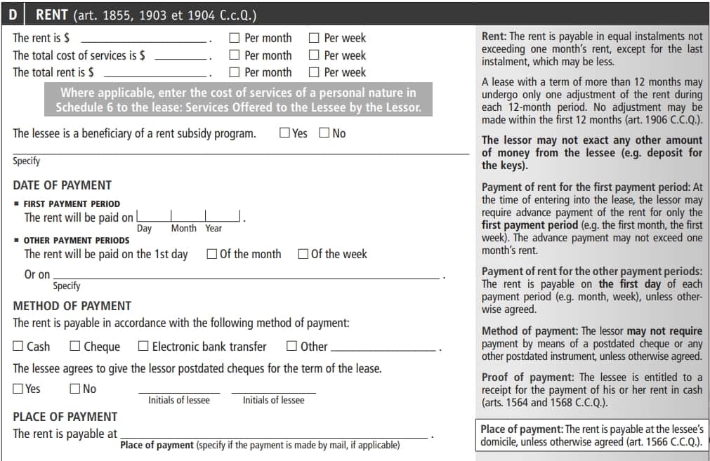 Fill out this section accurately. Avoid providing more information than required: the legal obligation is only to state what the lease specifies.